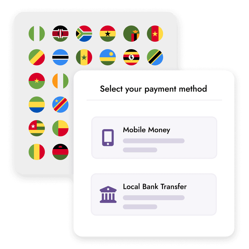 Integrate with popular, trusted local payment methods (mobile money, instant bank transfers, & more) across 20+ African countries. Increase conversion rates by offering payment options your users trust and use daily.