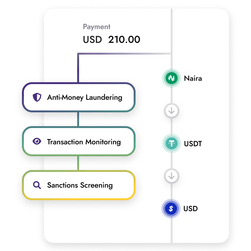 Benefit from built-in Anti-Money Laundering tools, transaction monitoring, and sanctions screening across jurisdictions. Significantly reduce your regulatory burden and operational costs by partnering with the first virtual assets service provider to be issued a VASP license in Africa.