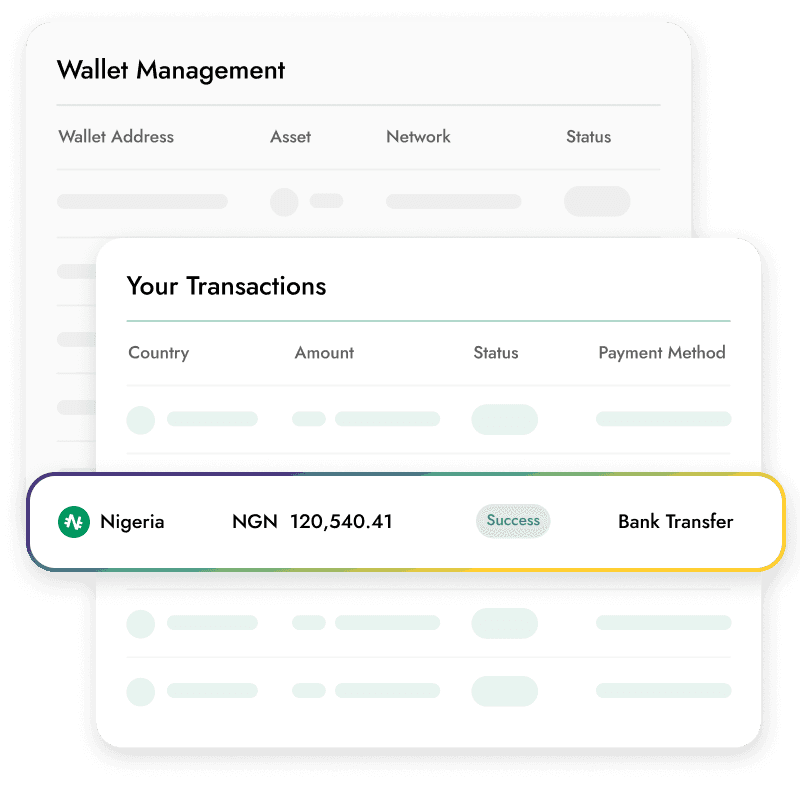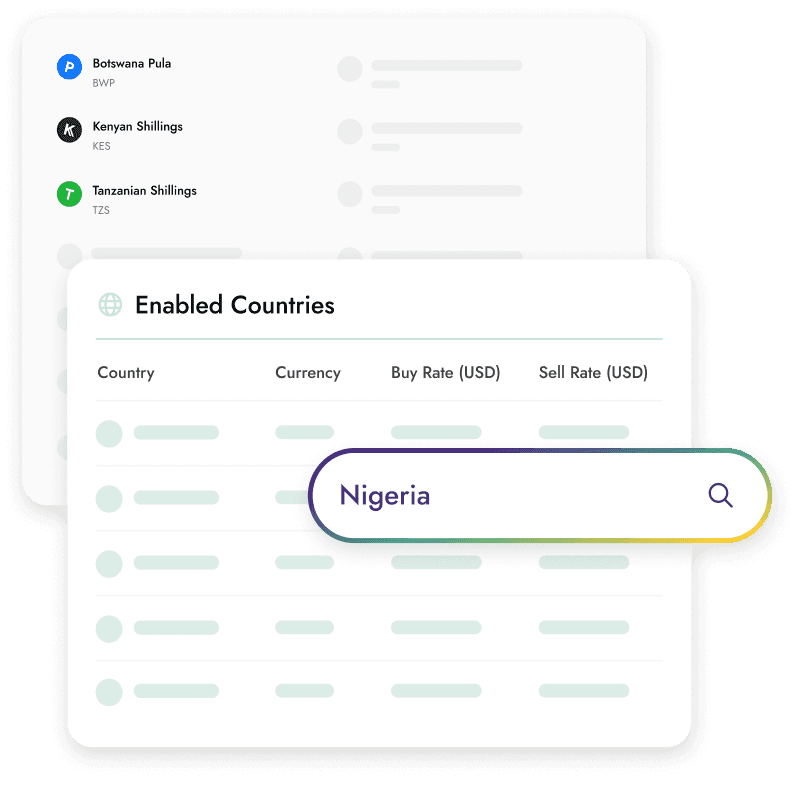 Expand your coverage and access over 20 African currencies by integrating our robust on/off-ramp payment rails within your platform.
